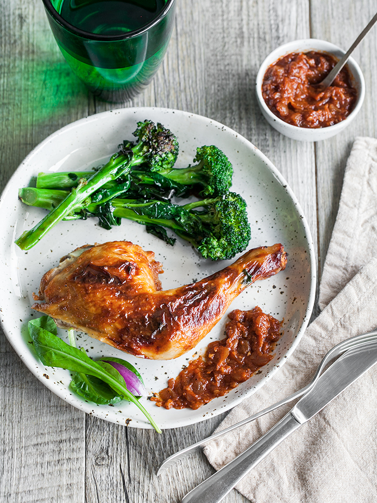 Buttermilk and Berbere Butterflied Chicken with Garlic Broccolini. GF recipe.