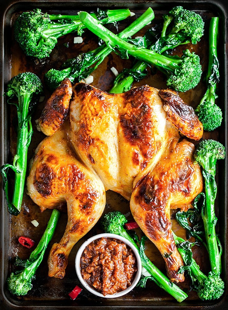 When the winter months are so close, you may want to cook heart-warming meals for cold winter days. Winter is the time for warm, hearty roasts. Gather the family together, heat up the oven and roast this delicious, melting in your mouth, chicken or even two. Garlic broccolini goes well with roasted chicken.